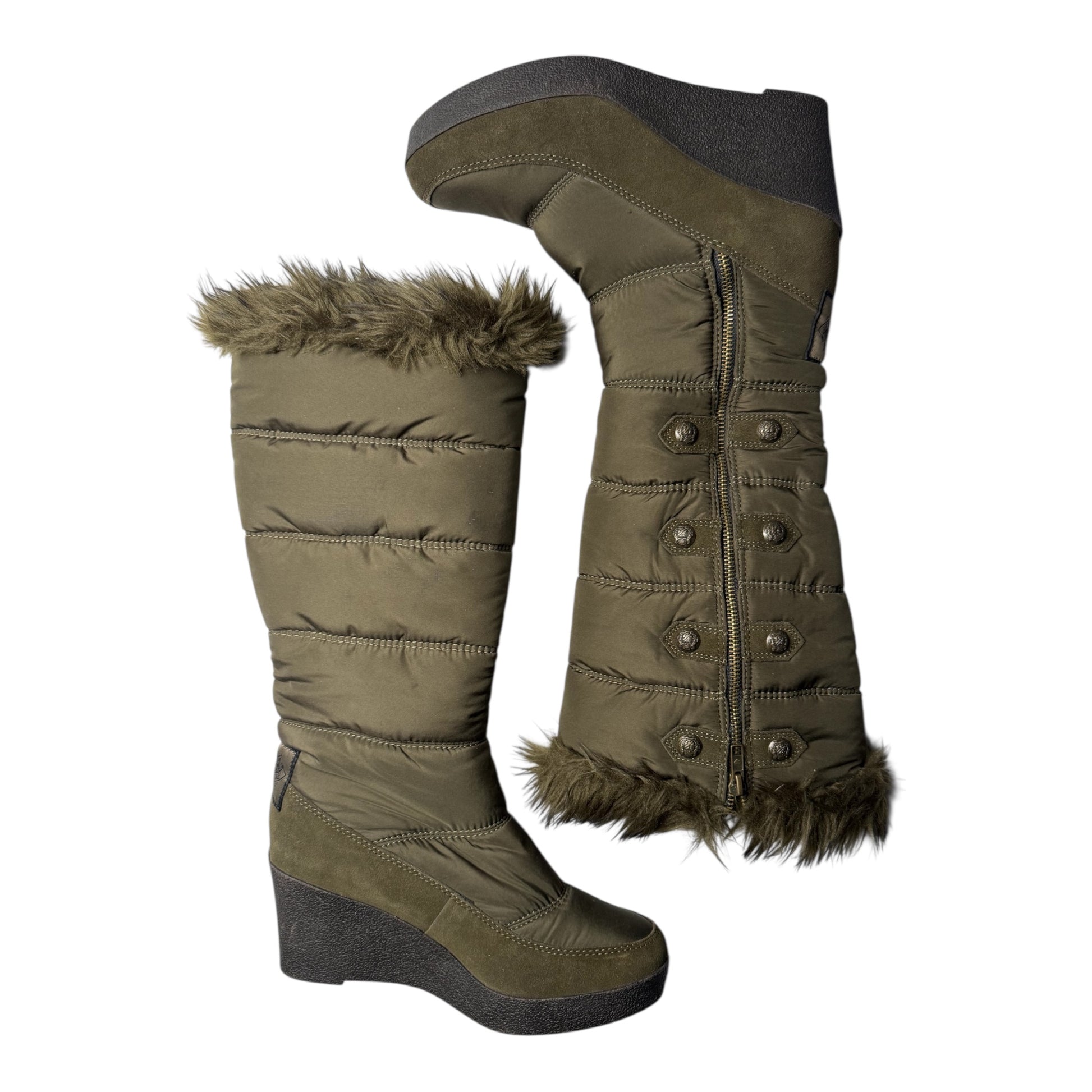 Juicy Couture Faux Fur-Trim Knee-High Wedge Platform Boots. US Women’s 10, Preloved Condition.